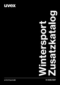 NEW New colorway New model NEW Art. No. Color Mirror color Lens tech S55.0.691.2030 black matt - supravision® yellow / clear (S1) Art. No. Color Mirror color Lens tech S55.0.691.2130 black matt - supravision® orange / clear (S2) Art. No. Color Mirror color Lens tech S55.0.691.2028 black matt - supravision® clear / clear (S0) uvex pyrit LG order here uvex gravity order here over the glasses over the glasses Art. No. Color Mirror color Lens tech S55.0.694.2030 black matt - supravision® yellow / clear (S1) cylindrical lens supravision® double lens UV Protection up to 400nm Art. No. Color Mirror color Lens tech S55.0.542.2028 black matt - supravision® clear / clear (S0) uvex pyrit LG AT order here over the glasses cylindrical lens supravision® double lens UV Protection up to 400nm cylindrical lens supravision® double lens UV Protection up to 400nm uvex athletic order here over the glasses cylindrical lens supravision® single lens UV Protection up to 400nm Art. No. Color Mirror color Lens tech S55.0.524.2058 black matt - supravision® clear (S0) * unverbindliche Preisempfehlung (inkl. MwSt.) UPE* 54,95 € UPE* 39,95 € UPE* 59,95 € UPE* 59,95 € 19 goggles